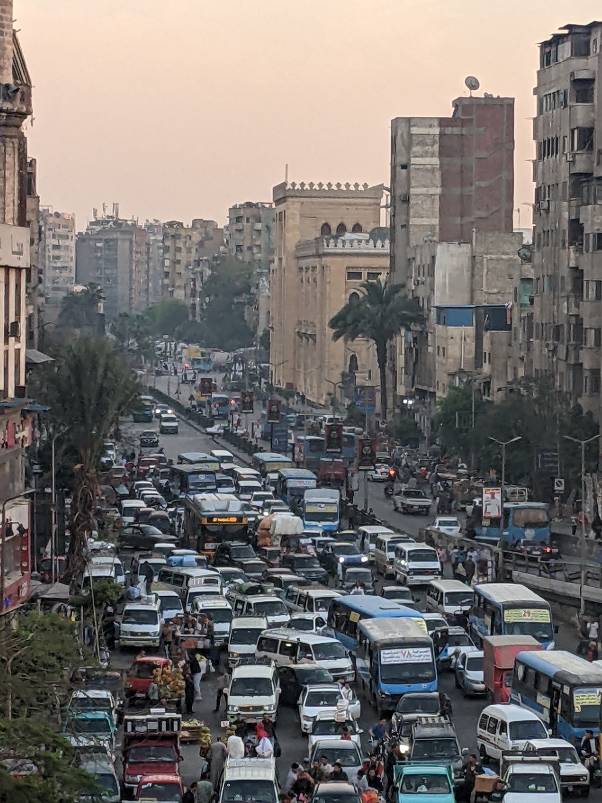 Antes de marcharnos, vemos la vista panorámica de Cairo. Se pueden incluso ver las pirámides al fondo, entre la bruma y la contaminación. Se puede apreciar la extensión de la ciudad que alberga a más de 20 millones de habitantes.